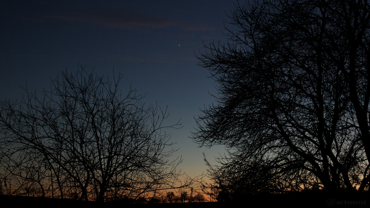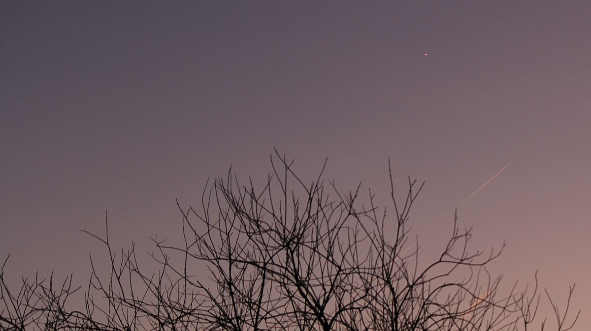Vor und nach den Mondbildern haben wir noch ein paar Schnappschüsse vom Abendrot am Westhimmel und von der Venus eingefügt, die zur Zeit den Südwesthimmel als prächtiger Abendstern ziert.