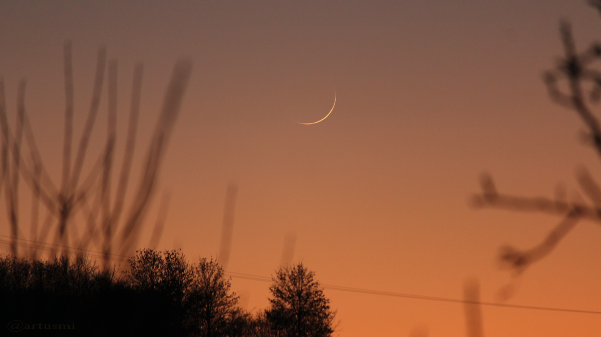 Liegende sehr schmale Mondsichel am 27. Oktober 2019 um 06:04 Uhr am Osthimmel von Eisingen