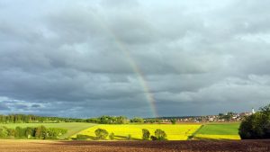 Der Regenbogen ist ein atmosphärisch-optisches Phänomen, das als kreisbogenförmiges, farbiges Lichtband in einer von der Sonne beschienenen Regenwand oder -wolke wahrgenommen wird.