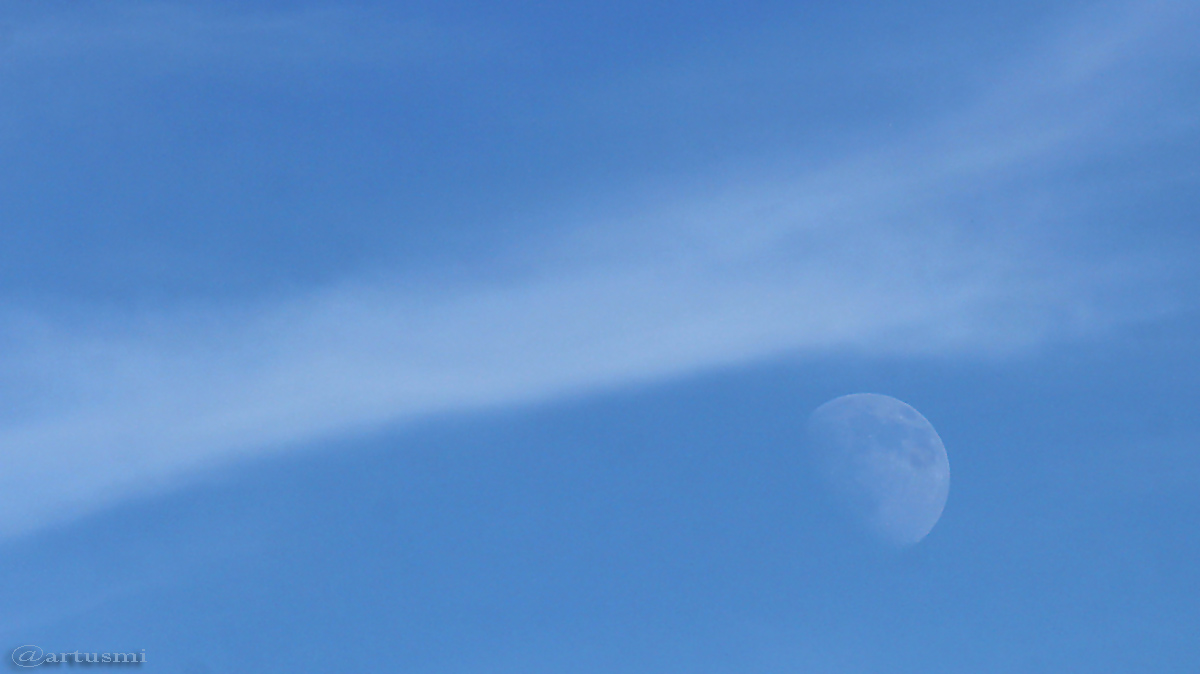 Bei Tageslicht ist der Mond recht unspektakulär. Vom Goldenen Henkel ist hier noch nichts zu sehen. Dazu hätten wir schon ein Teleskop einsetzen müssen.