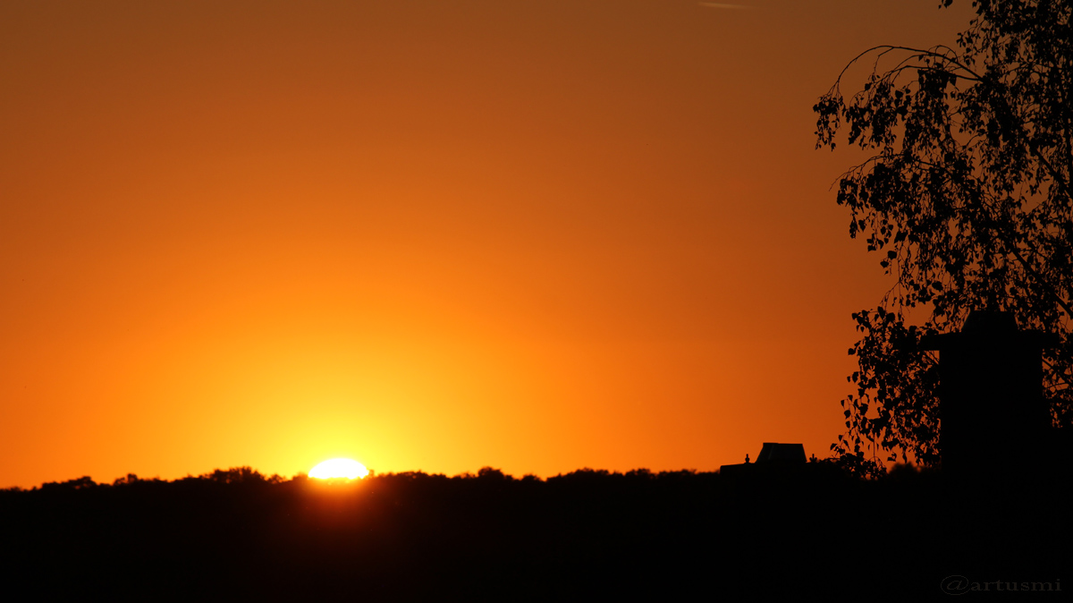 Gestern ging die Sonne an unserem Beobachtungsort um 20:15 Uhr unter. Heute fand der Sonnenuntergang bereits um 20:13 Uhr statt, also zwei Minuten früher. Wie Ihr ja wahrscheinlich wisst, geht nicht die Sonne unter, sondern die zwei Minuten Zeitunterschied ergeben sich aus der Drehung der Erde und ihrer Bewegung um die Sonne. Da wir Erdlinge davon so gut wie nichts mitbekommen, haben sich in unserem Sprachgebrauch solche Begriffe wie Sonnenauf- und Sonnenuntergang etabliert. Die beiden Bilder zeigen außerdem, dass die Sonne heute Abend nicht nur eher untergegangen, sondern auch merklich weiter nach links gerückt ist.