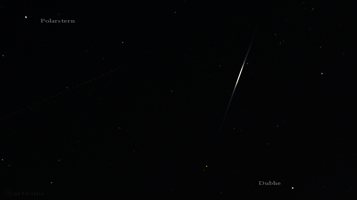 Iridium Flare zwischen Polarstern und Großem Wagen