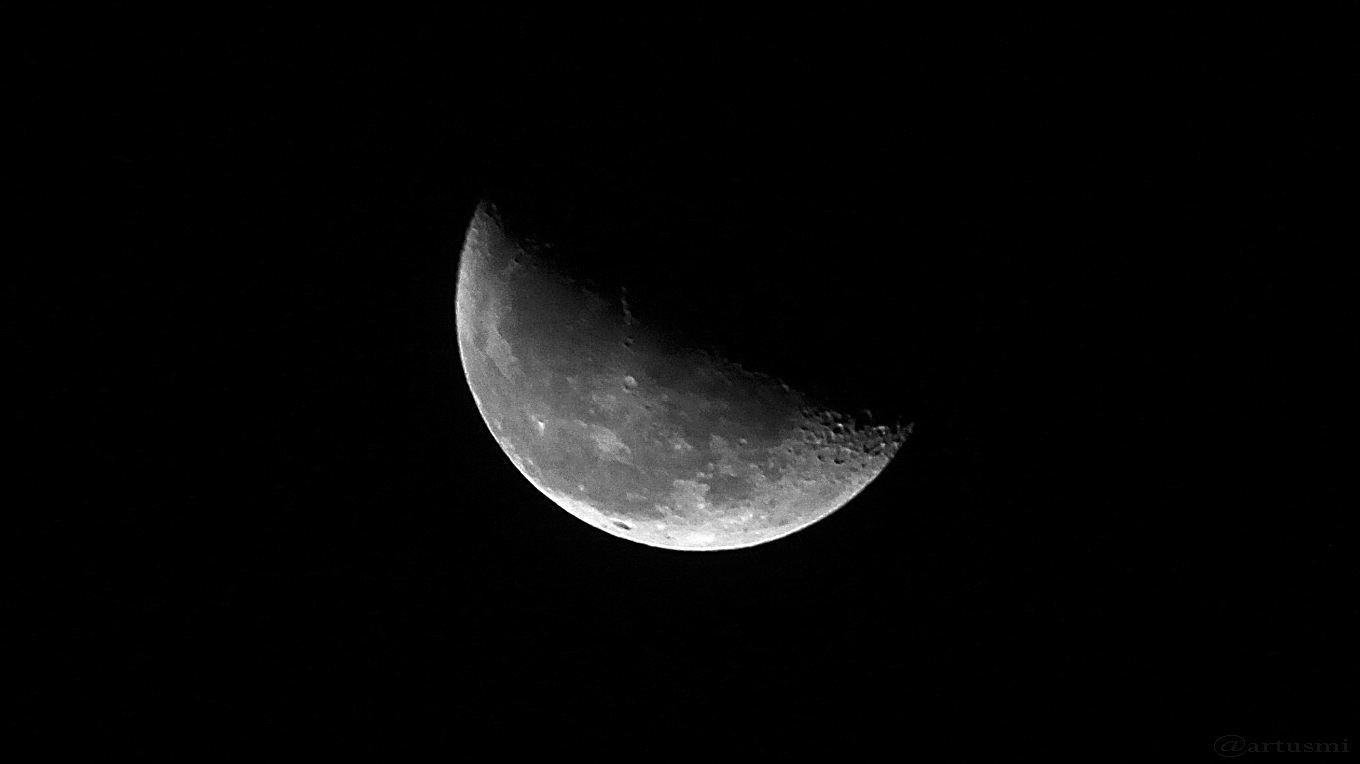 Der abnehmende Mond erreichte am 12. Oktober 2017 um 14:25 Uhr das letzte Viertel. Während der Halbmondphase steht er halb erleuchtet am Morgenhimmel und kann bis zum Mittag beobachtet werden. Aufgrund der dichten Bewölkung konnten wir den Mond erst in den frühen Morgenstunden des 13. Oktober am dunstigen Südosthimmel von Eisingen sehen.