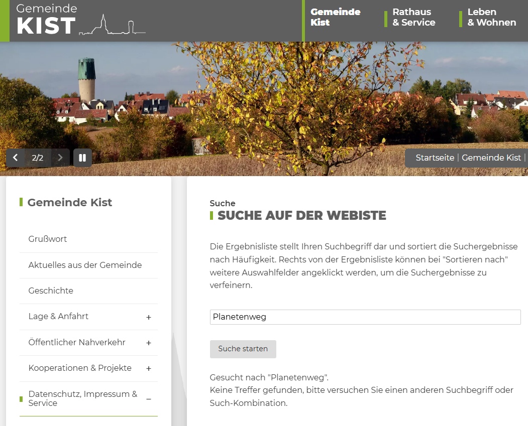 Da auch auf Google Maps nichts vom Planetenweg Kist zu finden war, haben wir nach Veröffentlichung unseres Blogbeitrags am 19. Dezember 2025 eine sofortige Aufnahme in den Datenbestand von Google Maps beantragt.