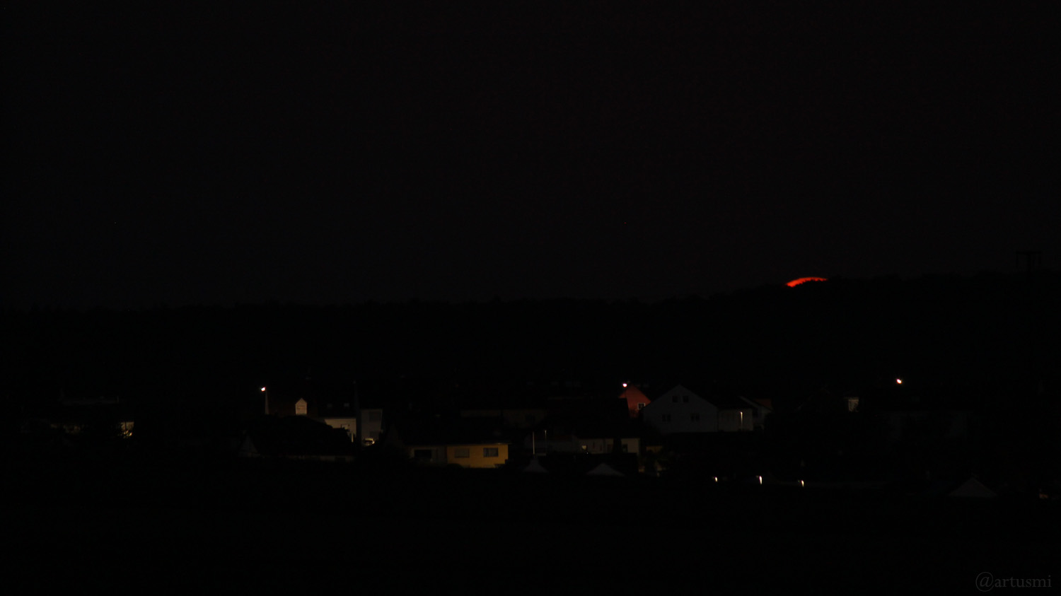 In der nachfolgenden Fotostrecke zeigen wir die letzten bei uns sichtbaren drei Minuten des Monduntergangs am 13. Oktober 2019 von 06:40 Uhr bis 06:43 Uhr. Je näher sich der Mond dem Horizont nähert umso mehr weicht seine Form von der eines Kreises ab. Vollmond ist heute Abend um 23:07 Uhr. Der Mond geht bei uns in Eisingen um 18:55 Uhr auf.